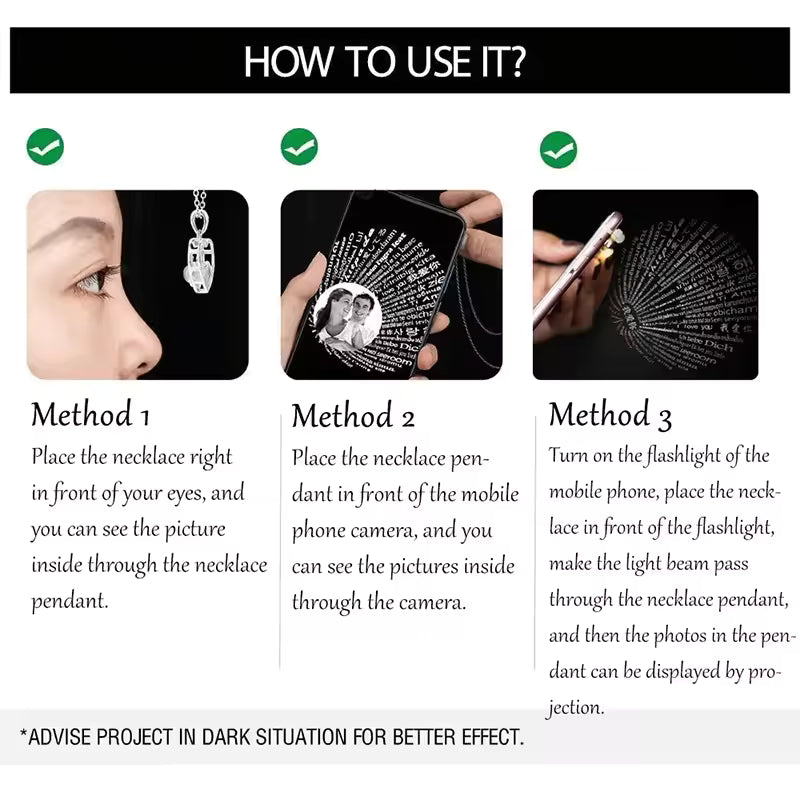 This personalized projection bracelet hides your favorite photo inside a beautiful heart charm. When light shines through, your special image is revealed, creating a meaningful keepsake you can wear every day. A perfect way to keep loved ones, memories, and even pets close to your heart.